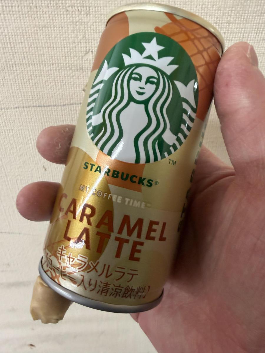 スターバックス185g缶のキャラメルラテということでかなり期待していたのですが、味自体はキャラメル風味で美味しいですが、コクがなく薄味で、水で薄めたような印象でした。