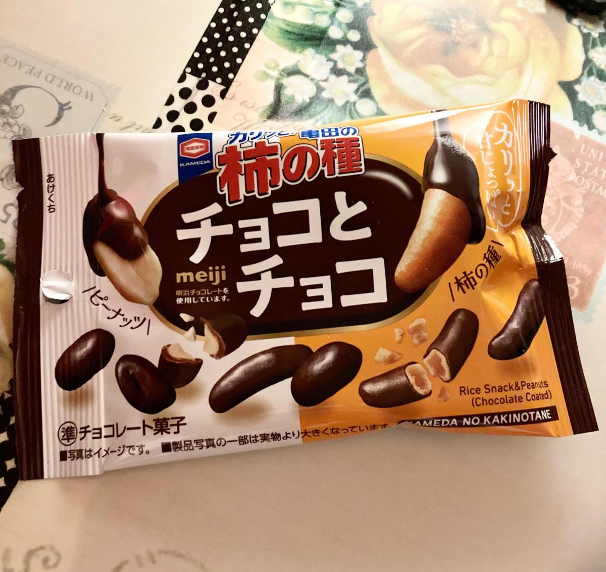 柿の種チョコとチョコのネーミングに惹かれてどんな味か試したく購入してみました。かなりの小さめサイズです。開けると両方とも、チョココーティングがたっぷりでした。ピーナッツは香ばしくてカリっと食感ですが、チョコでややしっとり、柿の種もややしっとり、チョコレートはやや甘めな味わいで、柿の種が甘しょっぱくて美味しいです。両方一緒に食べた方が尚いいです。