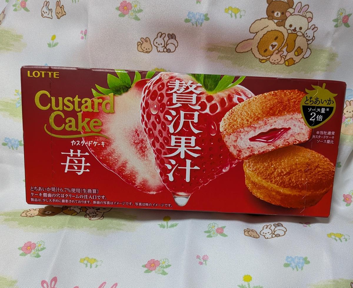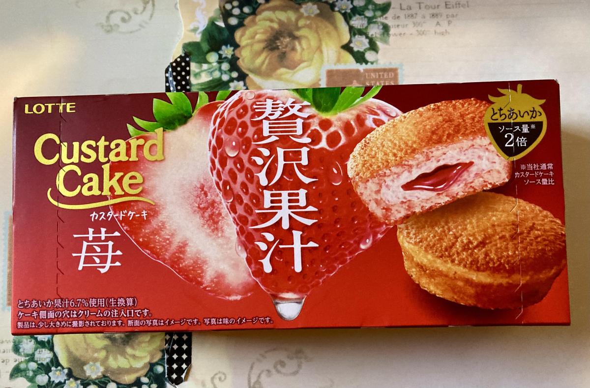 カスタードケーキの贅沢果汁苺味のパッケージに目が惹きどんな味か試したく購入してみました。小分けされているのでシェアできて大変便利です。カスタードケーキはふわふわで軽やかで美味しい食感です。甘みのあるとちあいかカスタードクリームと酸味が感じられるとちあいかソースのダブルでいちごの味わいが感じられ、美味しかったです。