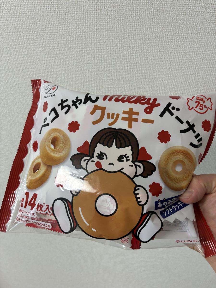 赤と白の元気なイメージと可愛らしいペコちゃんは、お菓子売り場でNo.1に目立っていました!ミルキークッキーのドーナツ型◎、すごく可愛らしいし、美味しそうと思って買いました。