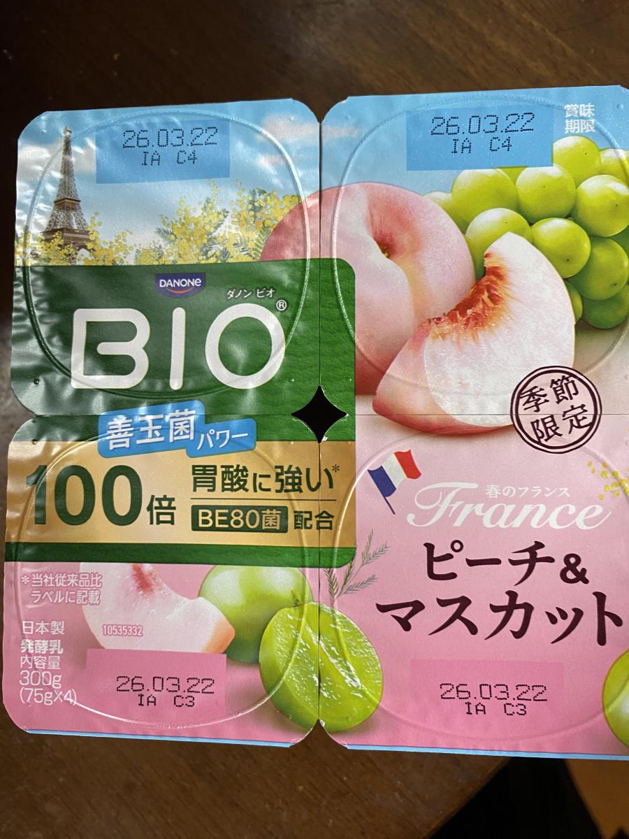ダノンビオヨーグルトのピーチ&マスカットは、やさしい甘さとフルーティーな香りが広がり、とても食べやすい味わいです。ピーチのまろやかさとマスカットの味のバランスが良く後味もすっきりしてます。