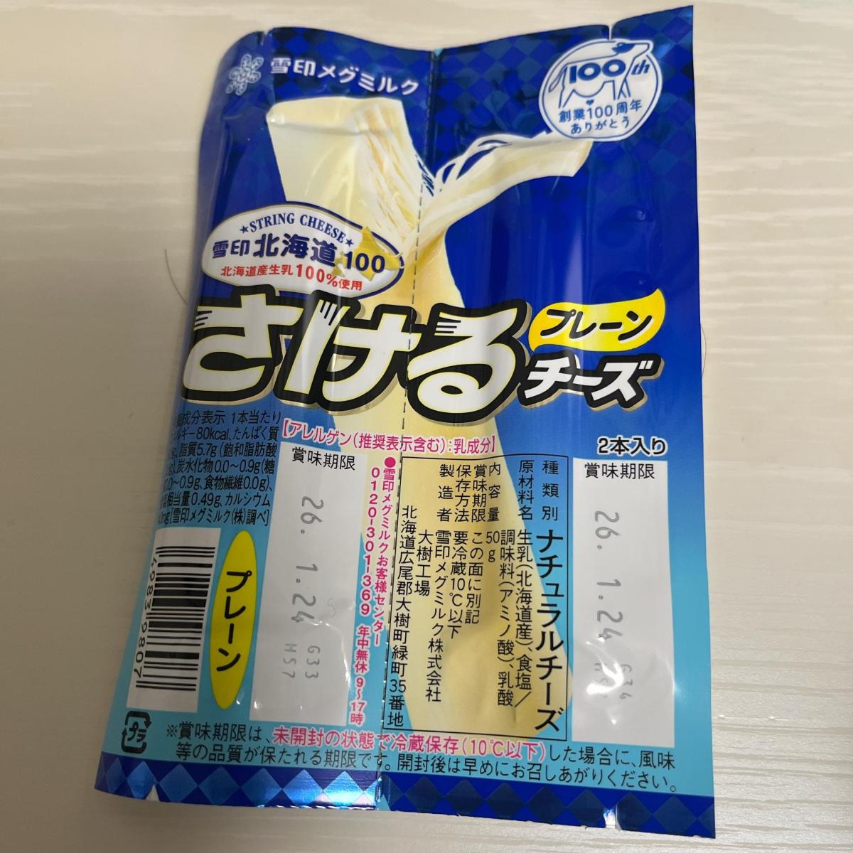 子供も大好きなさけるチーズ、今回はプレーンを購入しました。朝のパンを作っているときにふとひらめき、さいて挟んでみました。さけるチーズとわかった途端喜び、そして「自分でさきたかった」と言われ、それはそうだよなーと思いながらみんなで頬張りました。さけるチーズ独特の弾力のある歯応えで、さいていても食べごたえがあり、濃すぎずちょうど良いオーソドックスのチーズでとてもおいしかったです。
