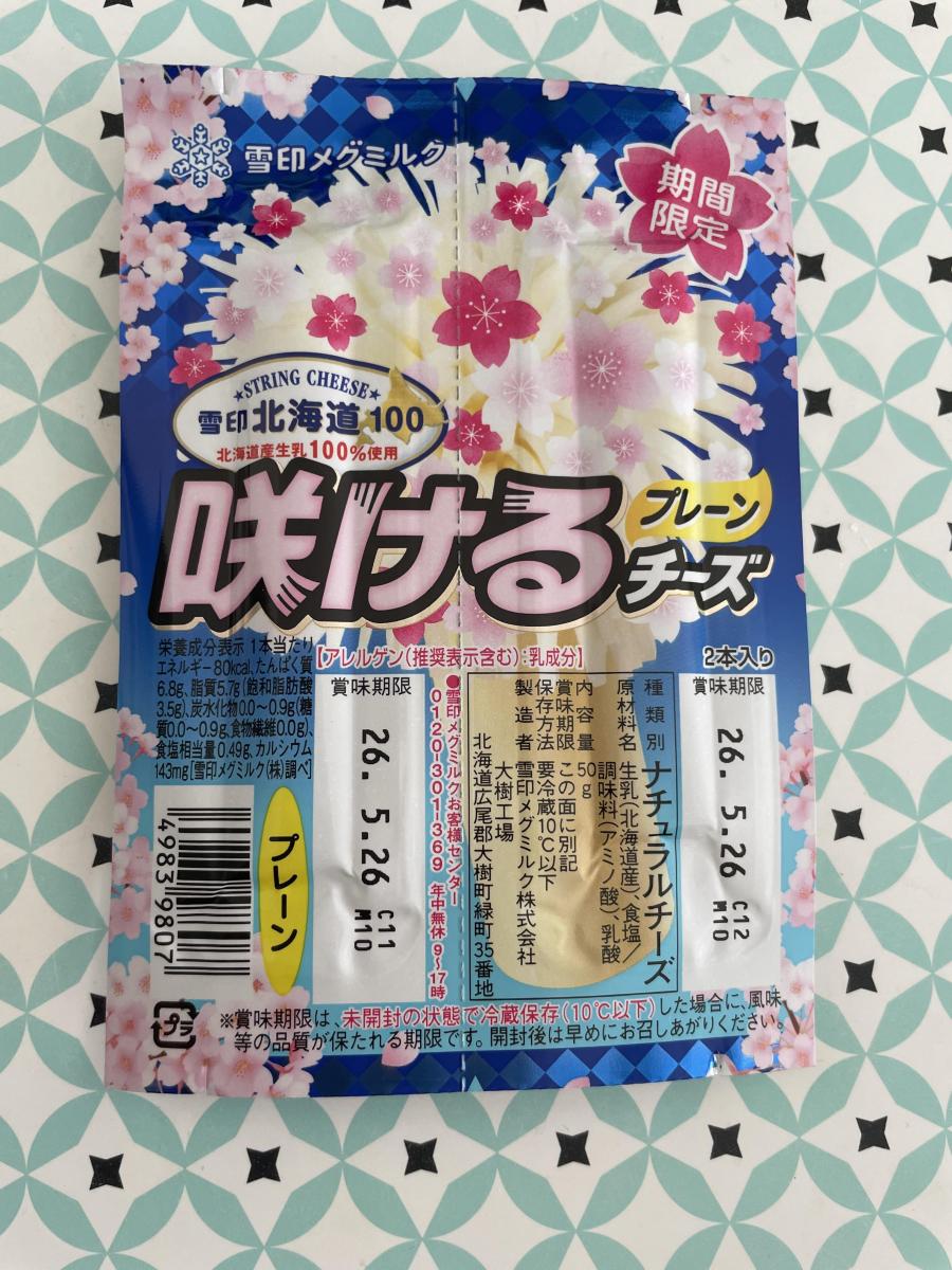 春限定?の「咲ける」チーズのパッケージが可愛らしくて購入!さけるチーズはなんと言ってもこのモキュモキュ感が好きです。おやつによく食べます。プレーンが一番好きです。ミルクのコクとクリーミーさにチーズがよく合ってついつい食べ過ぎてしまいますね。