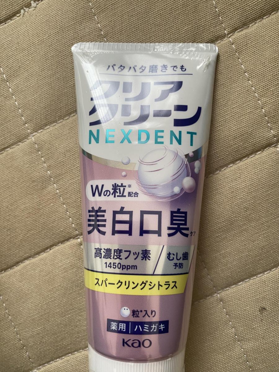 スパークリングシトラスの香りがとても爽やかで、さっぱりとしていて、良い香りです。粒入りの歯磨き粉なので、ながら磨きをしていても、粒々の効果で、しっかりと歯垢を落としてくれます。使い続けてみないと、美白効果はわかりませんが、高濃度フッ素配合なので、虫歯になりにくいのが嬉しいですね。