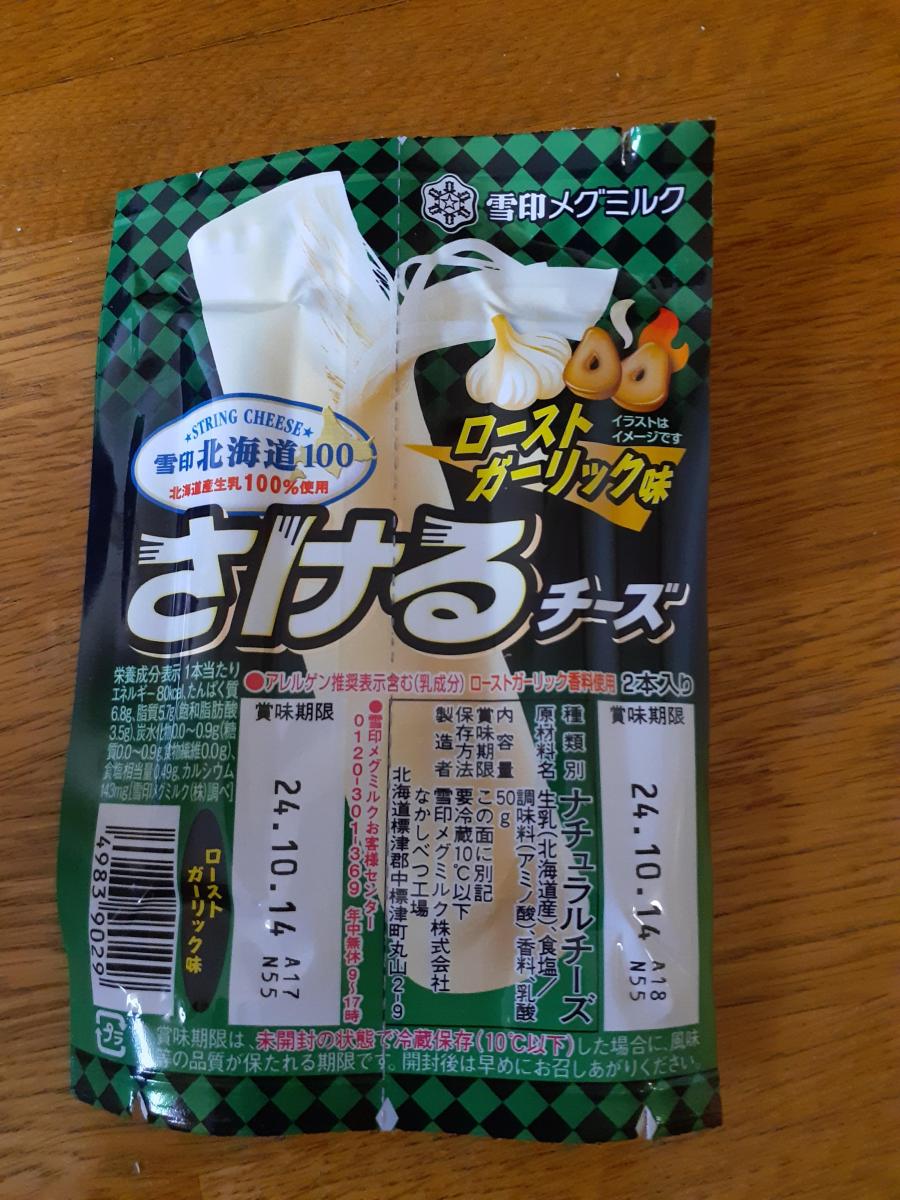 雪印メグミルク雪印北海道100さけるチーズローストガーリック味は私が初めて購入したさけるチーズです。ビールのつまみとして購入しましたが、ほのかに香るローストガーリックが印象的ですが食感がチーズと違いすぎるので私には合いません。