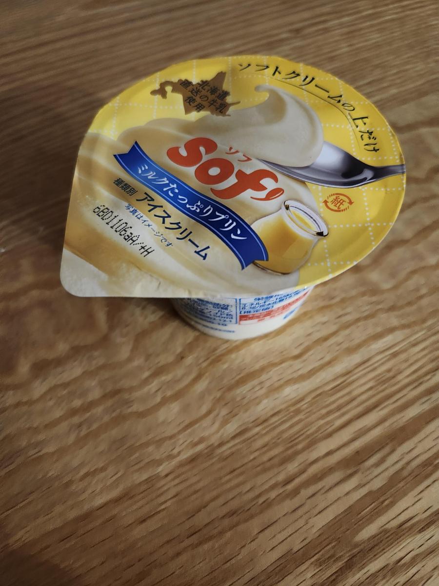 大好きなソフアイスシリーズでほんのり黄色のを発見!プラン味ということで気になり購入しました。プリンの味強めでソフトな食感!本当に美味しすぎでした。そしてソフアイスはこれだけ美味しくてもカロリー200以下なところも嬉しいポイントです!