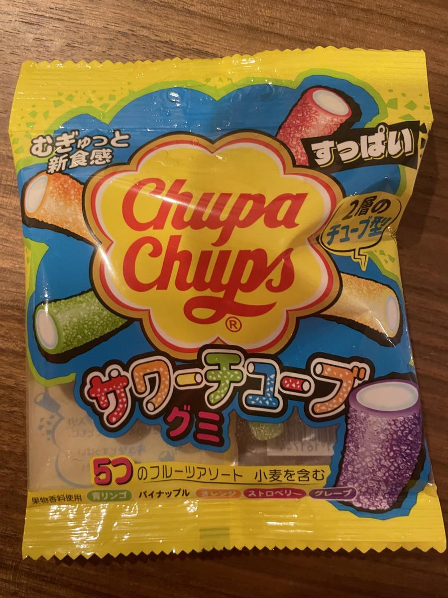チュッパチャップスから出ているチューブ型のグミです。周りのグミには酸っぱいパウダーがついていて爽やかなフルーツの味がさまざまあって飽きずに食べれます。中には甘いチューイングガムが入っていて食感の違いが楽しめます。チューブ型で小さいのでパクパク食べれます。今までにないグミとチューイングガムもいう組み合わせ、結構クセになる味でした。