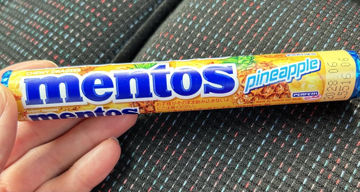 噛むとたまに砂糖のじゃり感があり楽しめるし、定番のグレープよりもメントスのテクスチャーに合っていると思います。