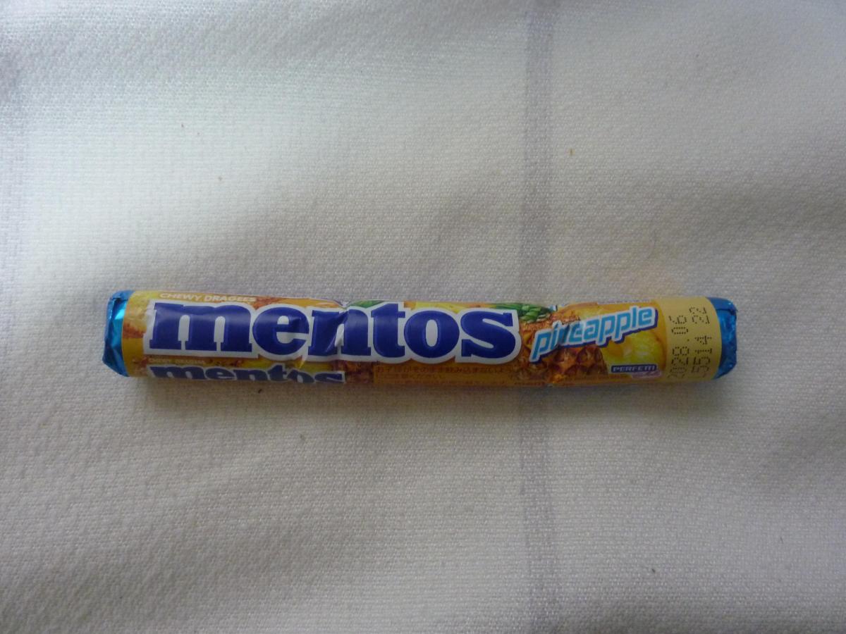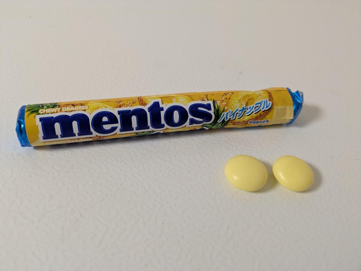 メントス パイナップル味が大変気になり購入してみました。パッケージの色合いもいい感じです。開けるとパイナップルの香りが漂い食欲がそそります。カリッとした食感の後にむぎゅっと柔らかくなる食感がやみつきになります。パイナップルの酸味と甘みが感じ、噛むほどにジューシーで美味しい味わいでした。コスパもいいのでまた購入してみたいなと思いました。