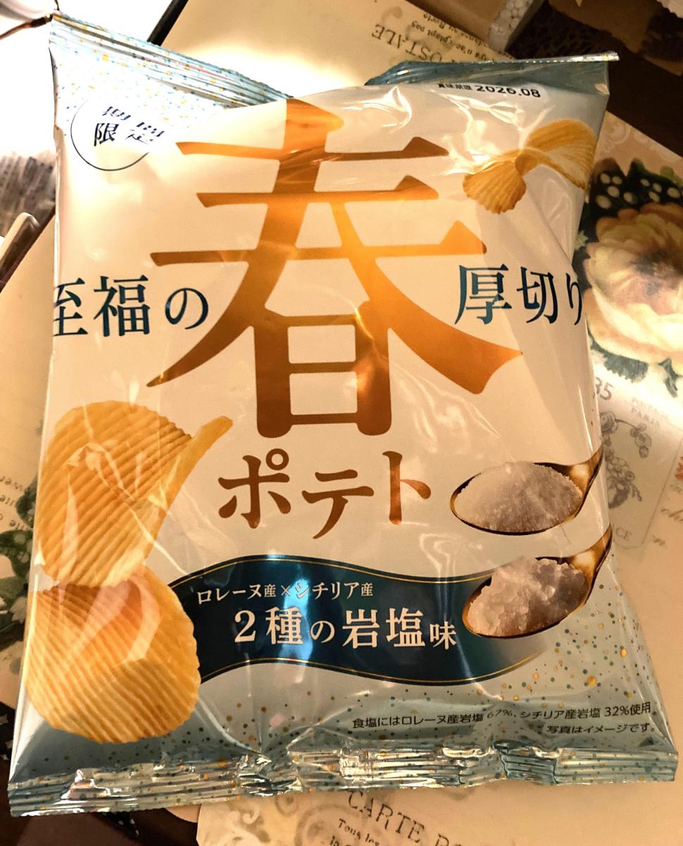 まろやかな岩塩が厚切りのギザギザポテトチップスの美味しさを引き立てていて美味しいです。上品で春らしい。いつものポテトチップスは友達や家族とワイワイ盛り上がって次々食べるけど、これはゆっくりと一人で味わって食べたい。特別感があっていいです。