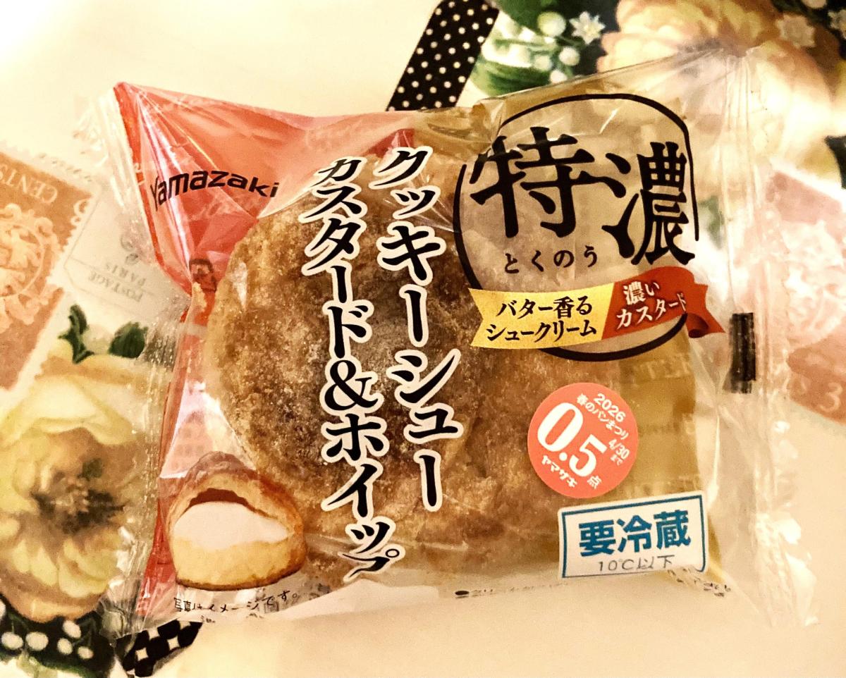 特濃クッキーシューのカスタード&ホイップ味が気になり購入してみました。クッキーシュー生地はさっくりしっとり、底面の縁のところはサクッと香ばしくいい食感です。カスタードクリームはぽってりなめらか、卵のコクと甘味がたっぷりのミルキーなカスタード味です。ホイップクリームはミルキーでコクがありすっきりした甘さで食べやすいです。