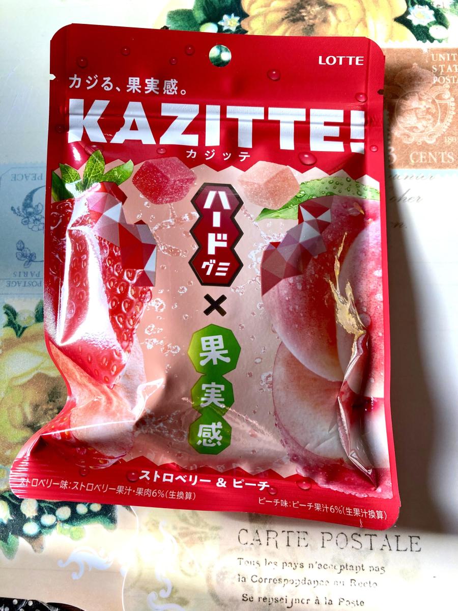 カジッテシリーズが大好きで今回ストロベリー&ピーチ味が出ていたので気になり購入してみました。ハード食感ですが、噛み応えが合ってそこまで硬くなく食べやすい食感です。ストロベリーの甘酸っぱさとピーチの甘みが感じ、2つ一緒に食べても美味しいです。酸っぱいパウダーありますが、甘みも結構感じ食べやすい味わいでした。