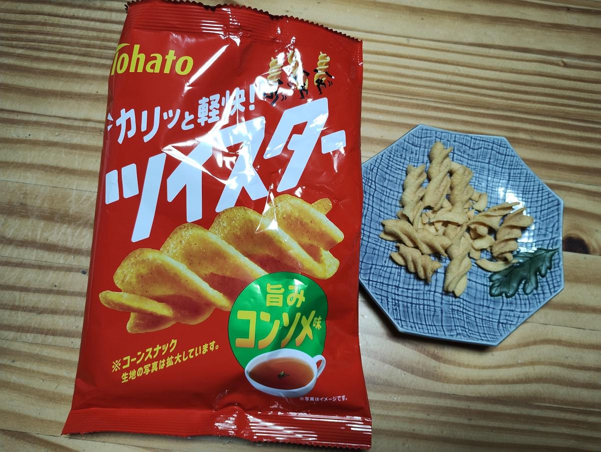 ポテトチップスではなくツイスターというひねった形は珍しいく、ポテコやあみじゃがを出している東ハトさんがまた新しいポテトスナック菓子を生み出しました。食感もチップスとは全然違うシャクシャクとした食感で、ポテコやあみじゃがに近い感じだなと思いました。1つ1つがくるくる巻いている形なのもありチップスに比べて味がのっていて、食感もあるから食べ応えがあります。コンソメ味がしっかり味わえておつまみに良いです。