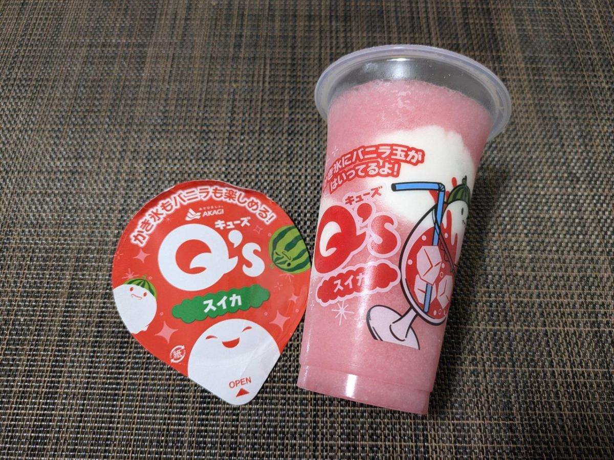 赤城乳業 Q’s スイカ味が気になり購入してみました。爽やかでさっぱりとしたスイカアイスは、シャリシャリでかき氷感たっぷりです。バニラアイスは、まろやかで甘すぎず、ふんわりとした軽めなバニラアイスで食べやすく、2つともバランスがいいです。暑い日にぴったりな味わいでした。量もたっぷりでコスパも良いです。