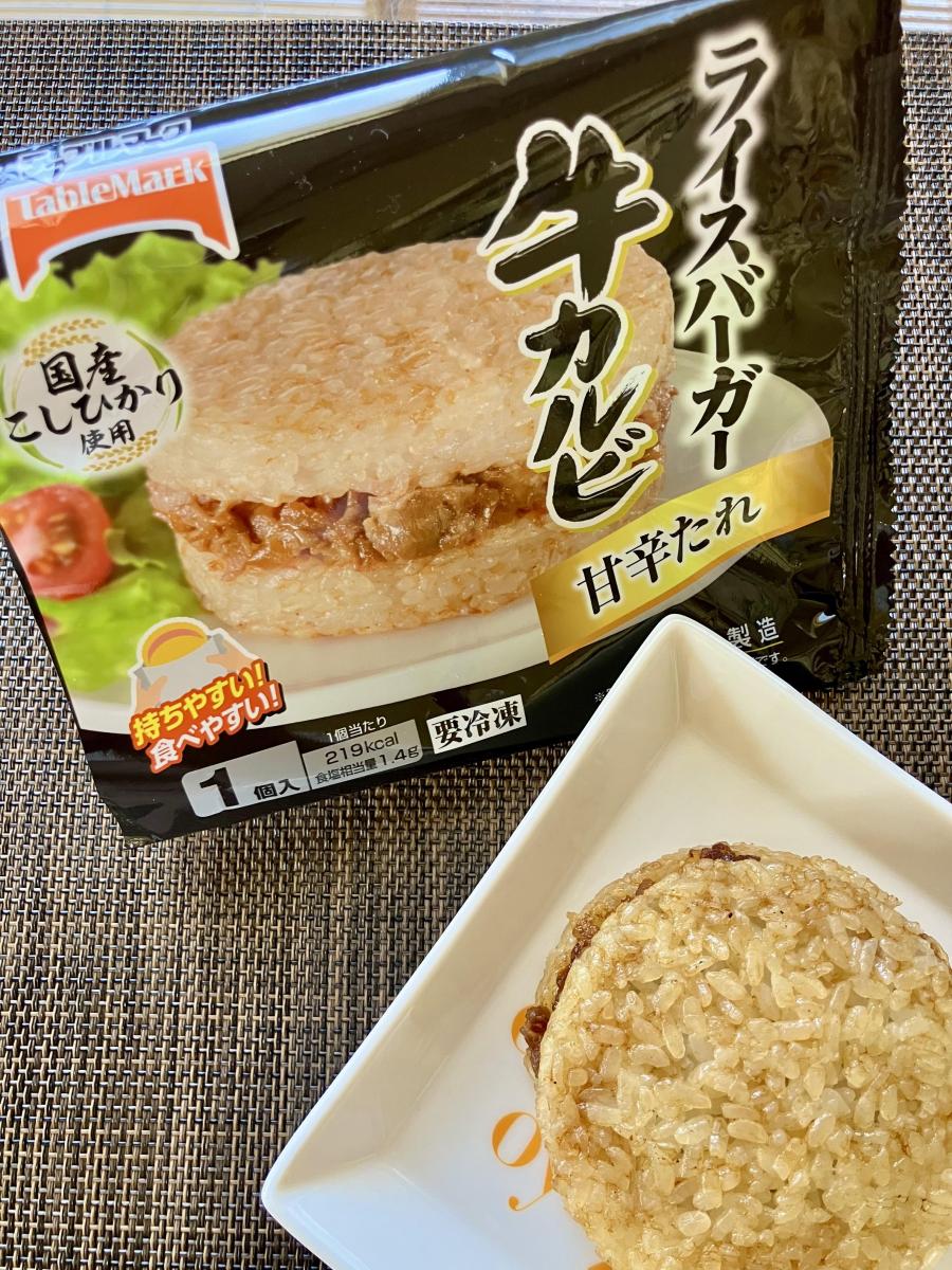 表面のお米が焼きおにぎりのように焦げ目がありパリッとしていて香ばしくサンドされている牛カルビは甘辛たれの味がしっかりついて柔らかさがあり美味しく、