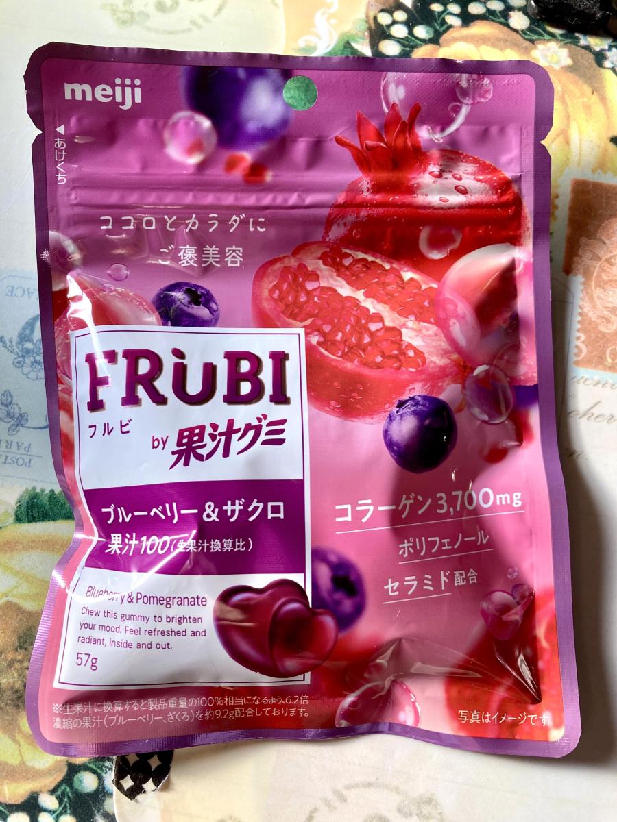 パッケージがかわいくて果汁グミ ブルーベリー&ザクロ味が気になり購入してみました。袋開けるとふんわりとブルーベリーの香りが漂いました。グミは柔らかくて食べやすい食感です。ハード型がかわいいです。ブルーベリーとザクロの甘酸っぱさがほんのりとかんじますが、やや人工的な味わいもし少しがっかりしました。