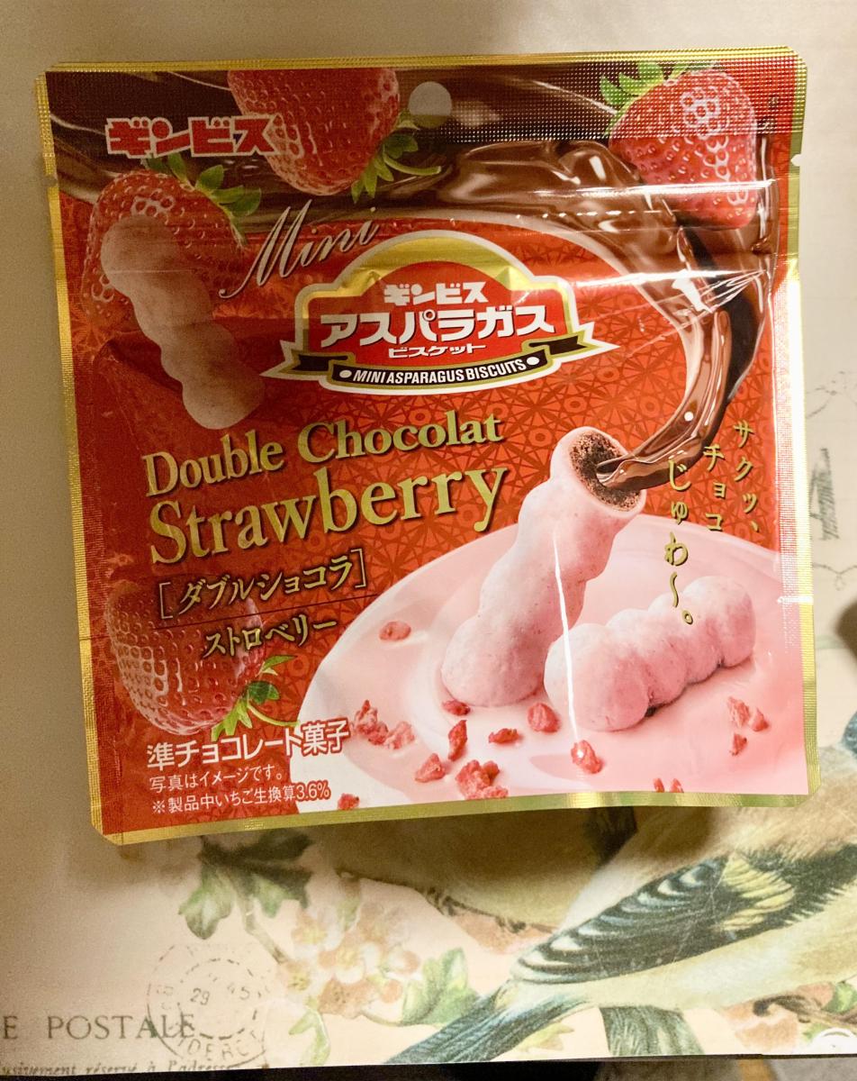 ミニアスパラガス ダブルショコラストロベリー味が気になり購入してみました。パッケージの色合いもいい感じです。しみチョコ製法のビスケットはサックリしつつもしっとりとして軽くていい食感でやみつきになります。チョコレートはややビターさもえるリッチな味わいで、ストロベリーチョコはしっかりした甘さで、酸味はほとんど感じなかったのが少し残念でした。子供には食べやすい味わいかな