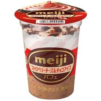 その下は鮮やかなピンク色のやさしい甘さのふんわりストロベリーアイス、さらにチョコチップ入りのチョコアイス。細かいチョコチップの食感がアクセントになってるし、すぐに溶けて濃厚な味わいに。