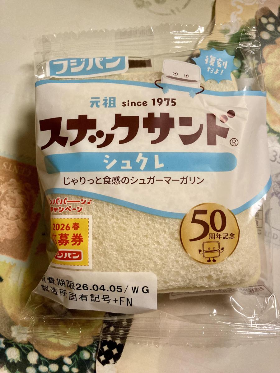 スナックサンド シュクレ味が気になり購入してみました。生地はふんわり、やわらかい生地でしたが、少しだけパサつきが感じたのが気になりました。中には練乳クリームが入っており、ねっとりとぼってりとした甘めな味わいとミルキー感がありました。ジャリジャリ感はやや控えめな感じがしました。