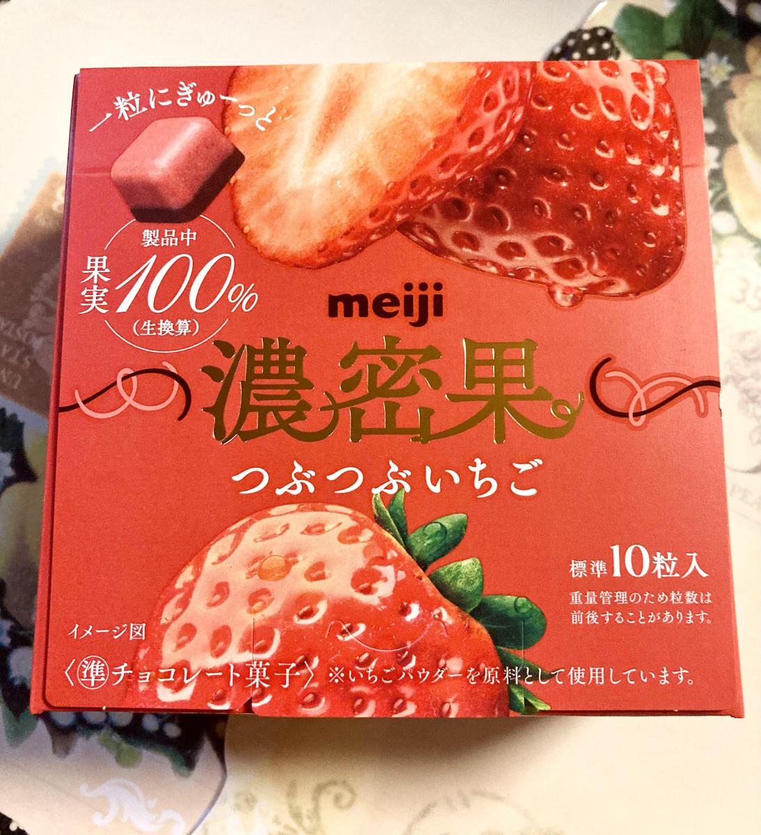 濃密果つぶつぶいちごのパッケージに目が惹きどんな味か試したく購入してみました。小分けされているのでシェアできて大変便利です。2層構造になっており、口に入れるととろける様な食感です。つぶつぶ感がしっかりしておりいちごの濃厚な酸味と香りが口いっぱいに広がり大変美味しい味わいでした。また購入してみたいなと思いました。