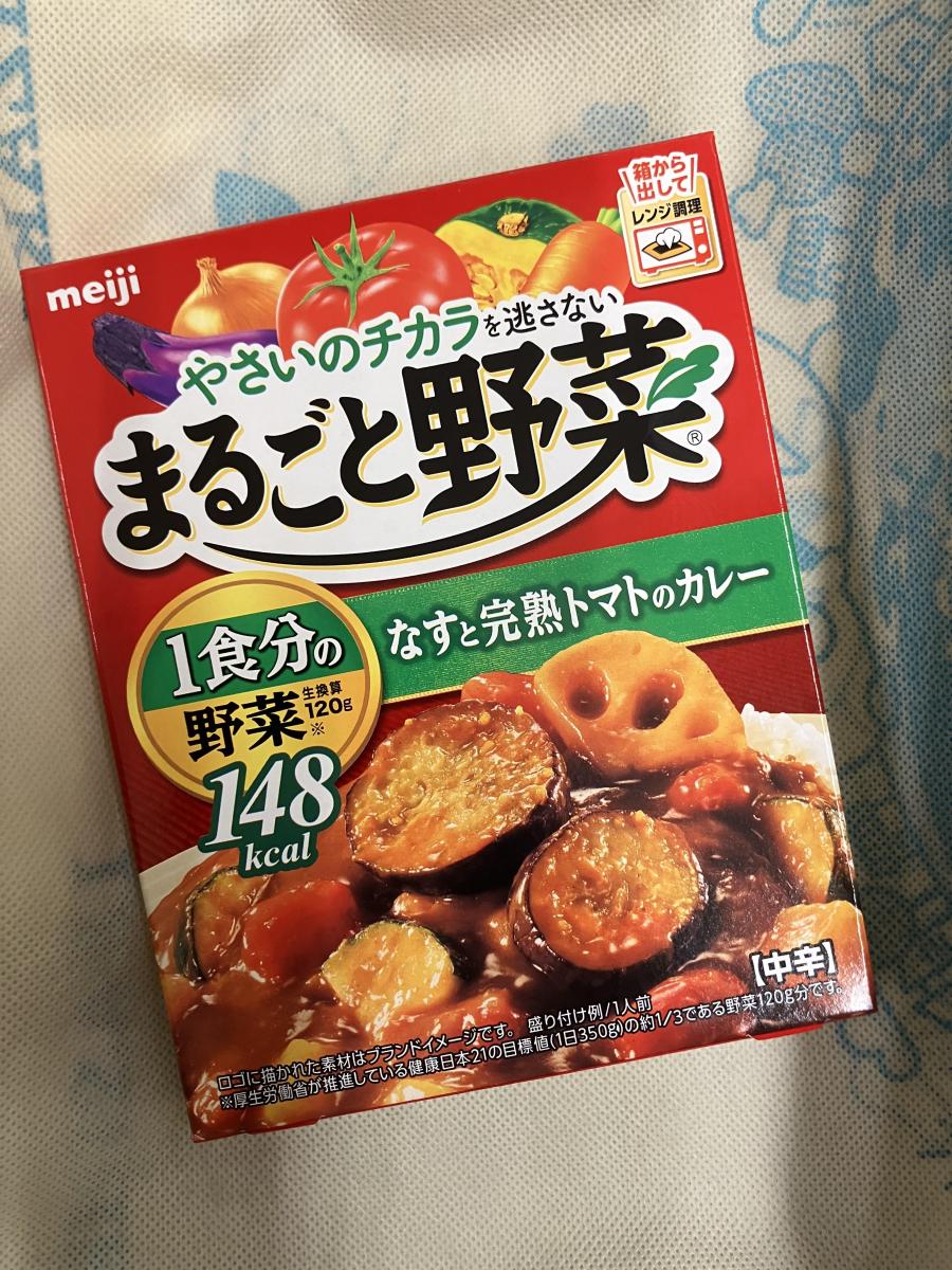 たまには楽したいなと思いレトルトカレーを購入しました。なすが3切くらい輪切りになったものが入っていて、トマトでさっぱりとしたカレーでした。