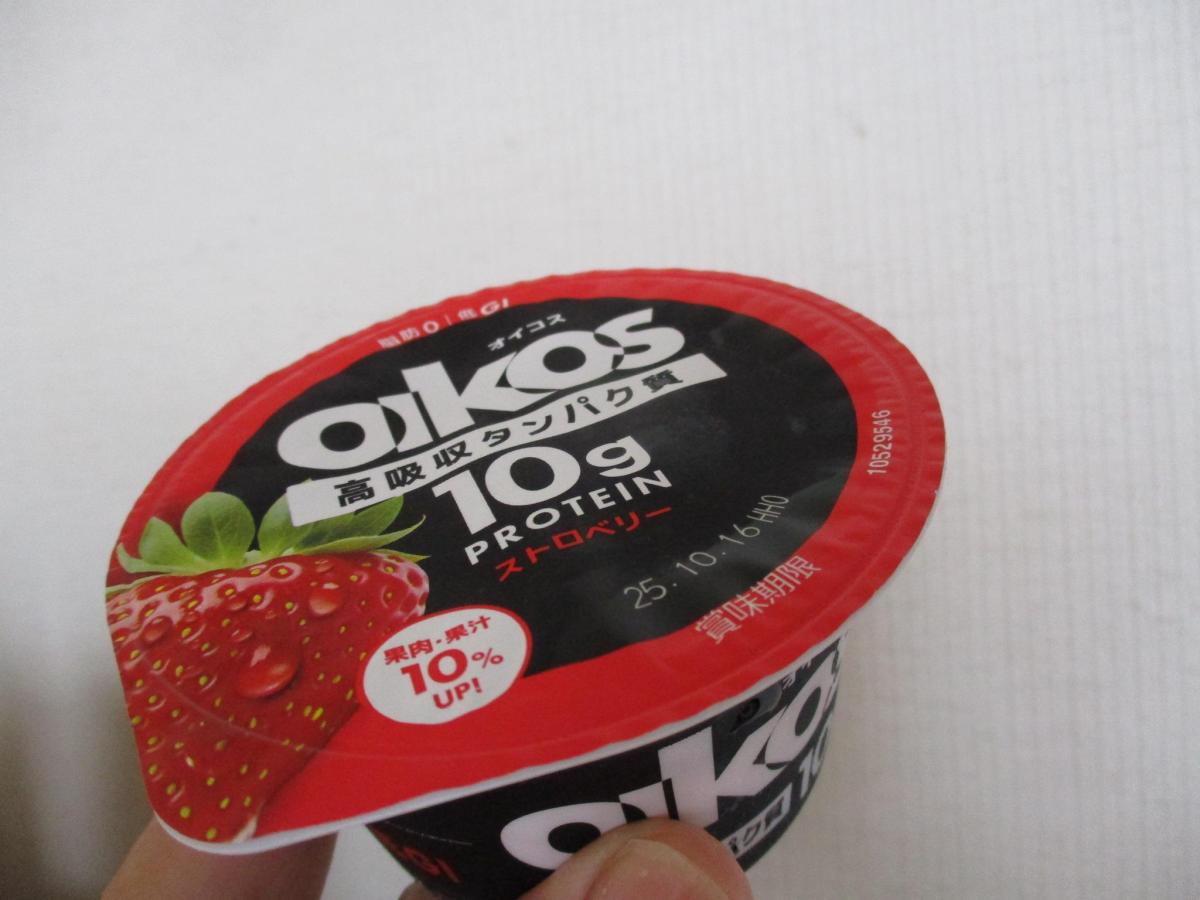 オイコスのストロベリーは高吸収たんぱく質が10g入っているヨーグルトです
