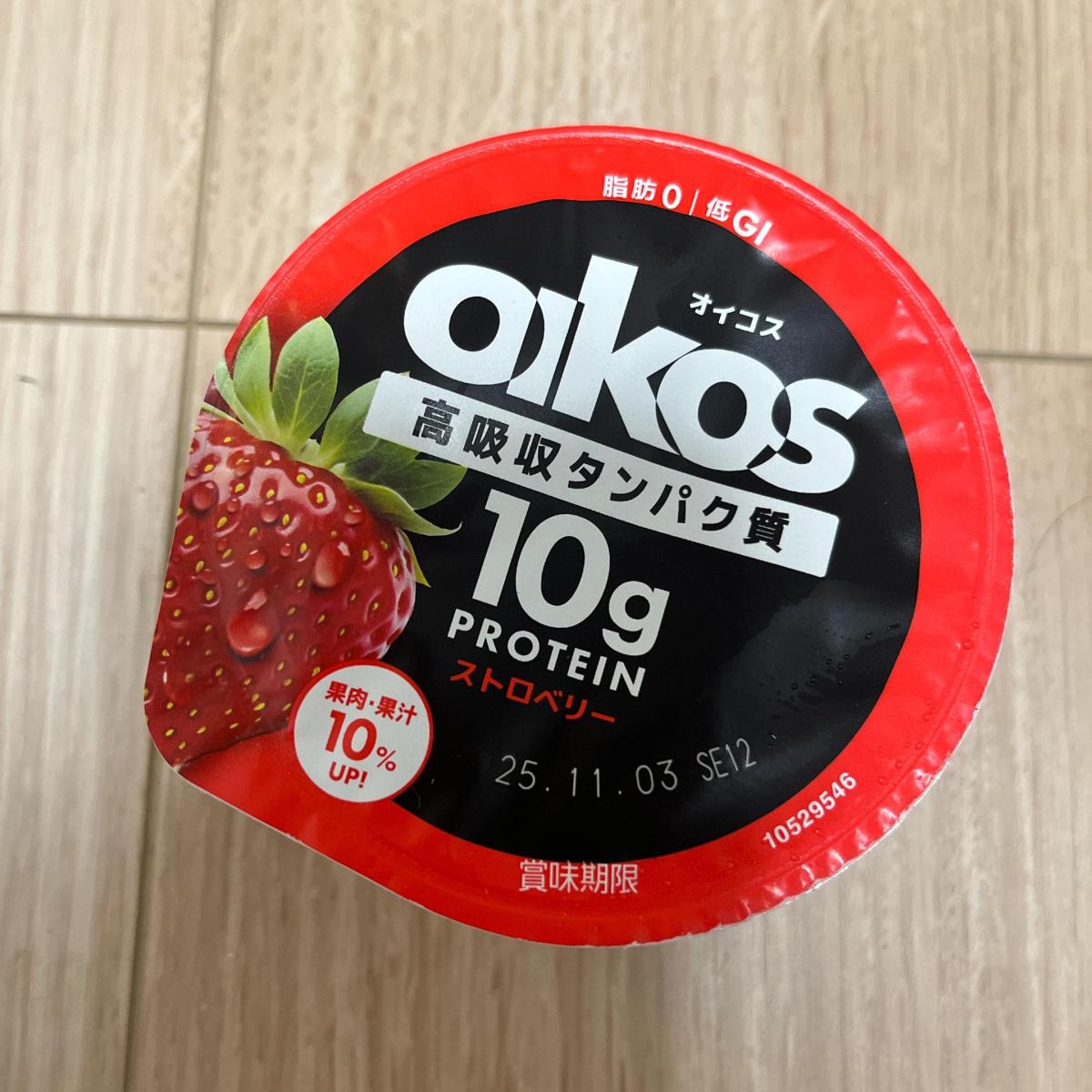 たんぱく質がヨーグルトからしっかりとれる、なんとも嬉しい商品オイコス購入しました!今回はストロベリー味、想像よりたっぷりといちごソースがかかっていたので感動〜おなじみの濃厚なヨーグルトとよく合っていました。デザート系のヨーグルトなのに安定の低カロリー、脂肪ゼロなんて最高すぎます、また必ずリピートします。