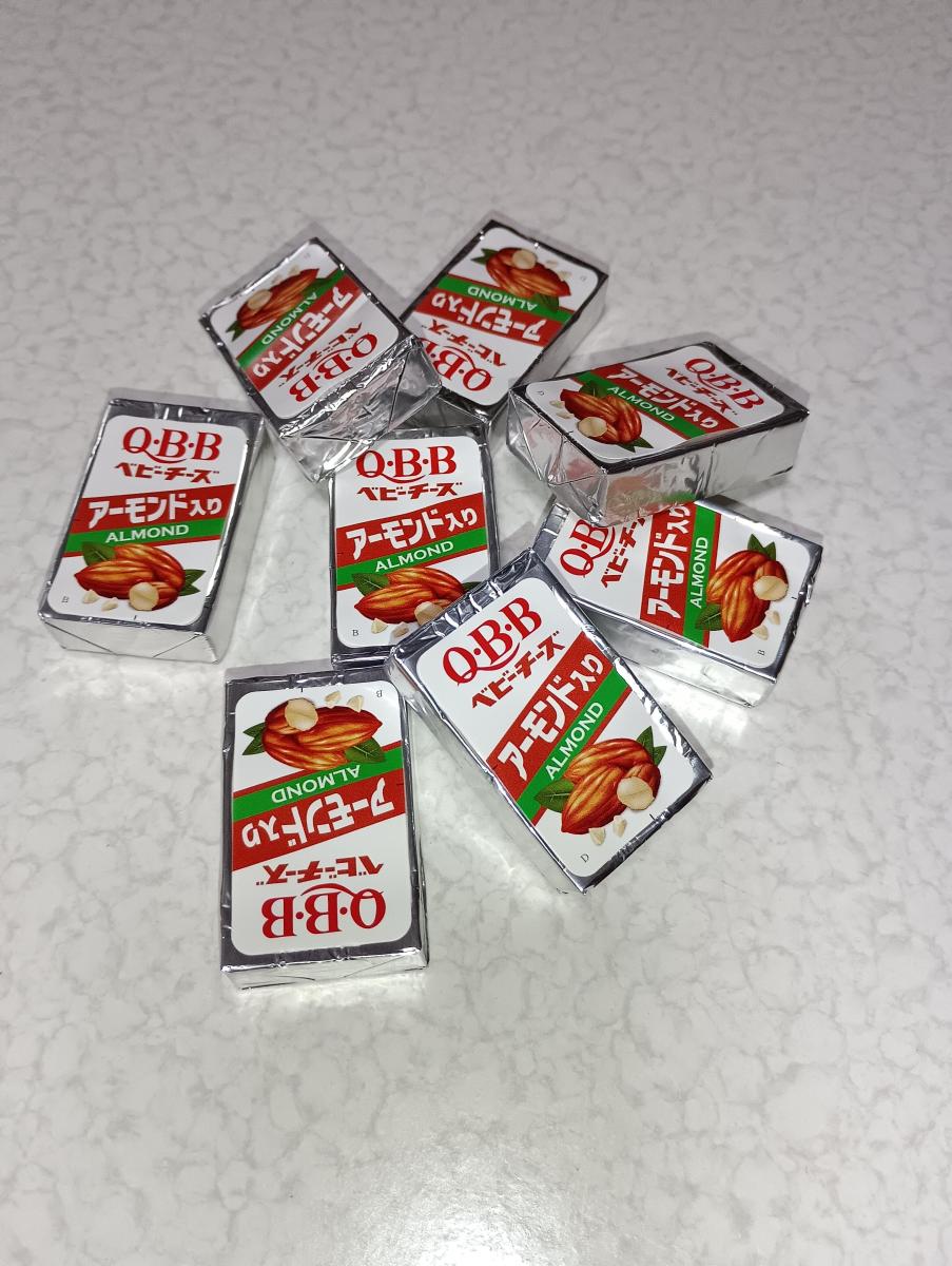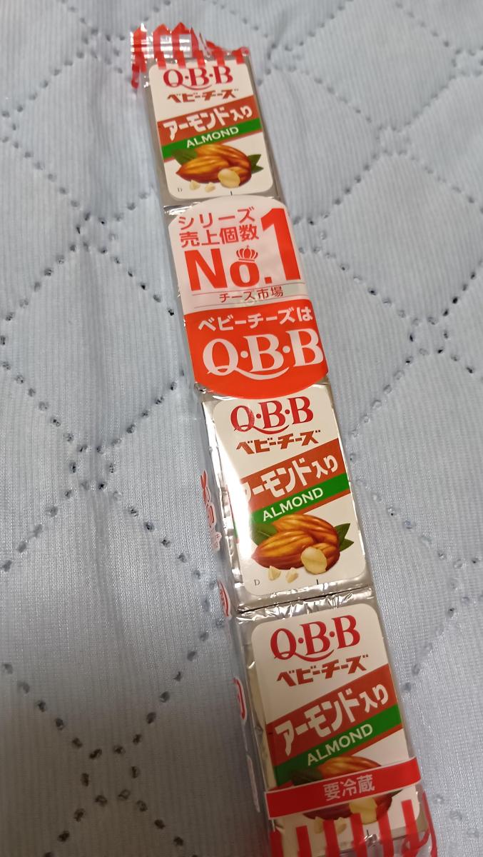 QBBのベビーチーズはどこのお店でも置いてあるので買い物に行くと必ず買います。アーモンド入りはおやつやおつまみとして食べることが多いです。チーズの食感も柔らかくて食べやすいと思いました。チーズとアーモンドの組み合わせはとても健康的だと思います。