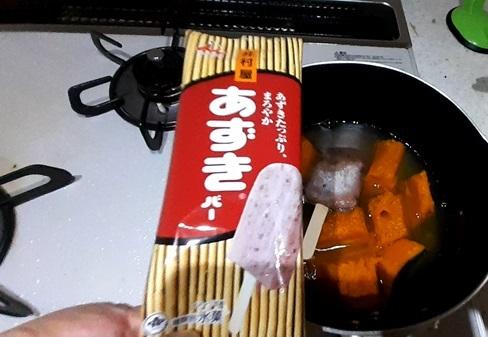 塩とあずきバーだけで、すごくおいしいかぼちゃのいとこ煮ができました。