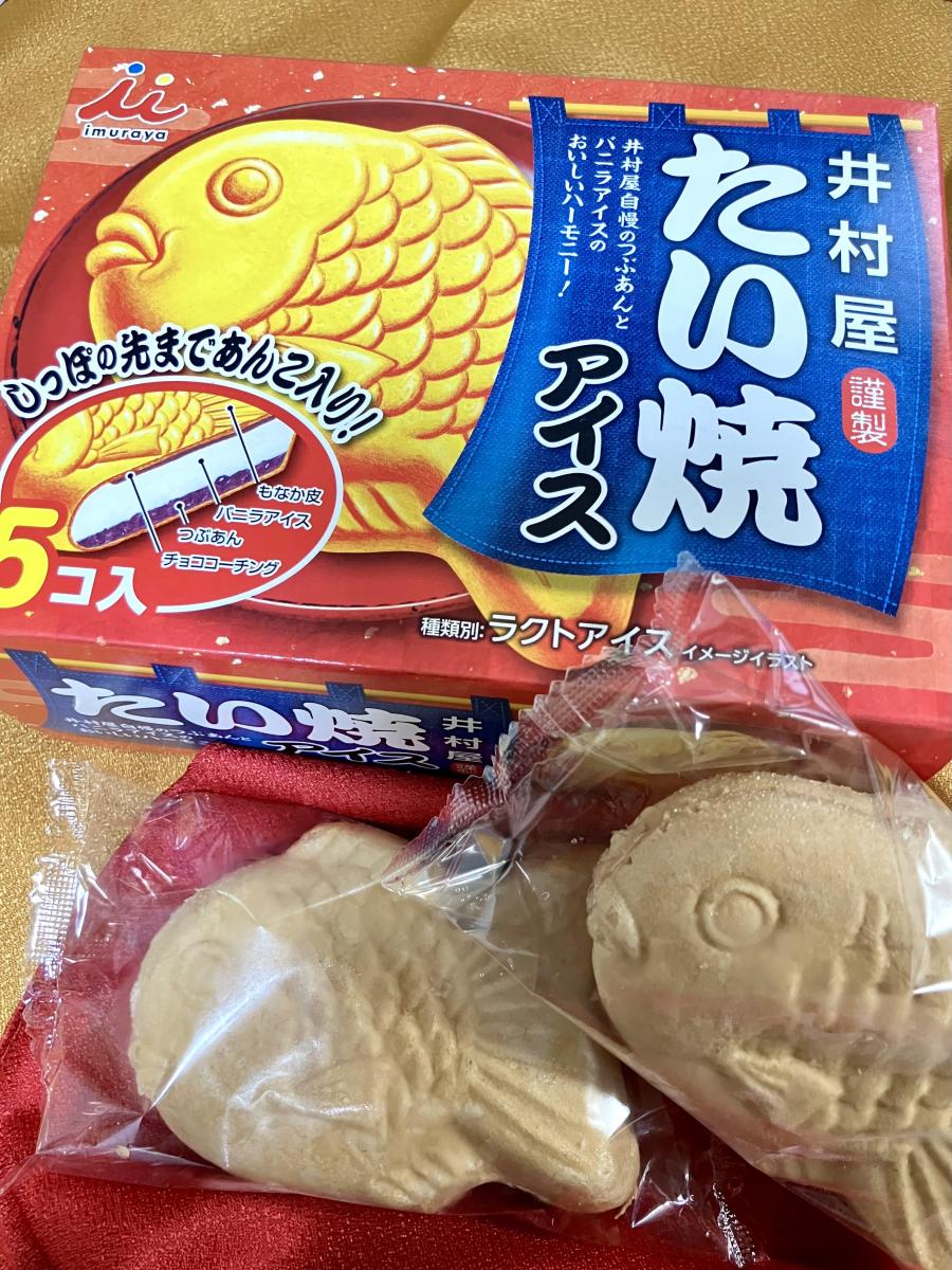 可愛いサイズのたい焼アイスが5個入って200円ちょっとでした、特売とはいえコスパ抜群です。たい焼の中にはバニラアイスとあんこがしっぽまでぎっしり入っててめちゃめちゃ美味しかったです。暑い夏場に嬉しいたい焼でした。