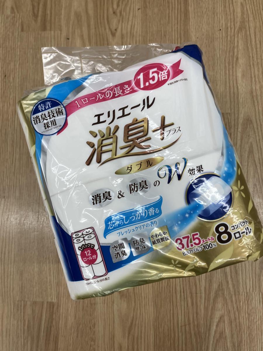 通常12ロールのパックのところ、1.5倍の巻きになっていて8ロール入りですので、購入後に持ち帰るのが少し楽になりました。消臭プラスと書かれているように、芯に消臭作用があり、またフローラルの香りもしっかり香ります。トイレットペーパーの外袋を破った時に結構香りが強いかなと思ったのですが、実際にトイレの中に置いてみると、フローラルの香りが爽やかに香るぐらいで、強すぎるということはありませんでした。ペーパーホルダーに入れるのがちょっとキツキツでしたが、肌触りや吸水性バツグンで、気に入りました。