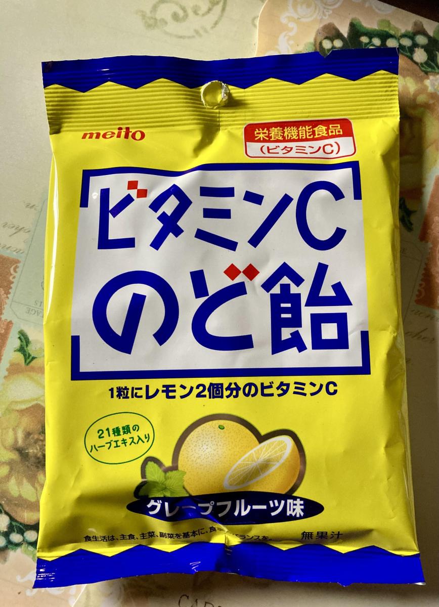 名糖のビタミンCのど飴のパッケージに目が惹きどんな味か試したく購入してみました。てっきりレモン味かと思いきやグレープフルーツ味でした。甘さと酸味は控えめで、飽きずに食べられるグレープフルーツ味でした。21種類のハーブエキスは、味としての主張はほぼなく、後味にほんのりした清涼感があり、食べやすい味わいで美味しかったです。コスパもいいのでまた購入してみたいです。
