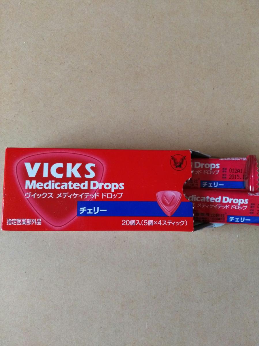 普通ののど飴では効かない時にヴィックスドロップをなめます。チェリー味ですが結構スースーしますね。甘いだけでは効きそうな感じはしません。医薬部外品ではありますが喉のイガイガが治ることもあります。