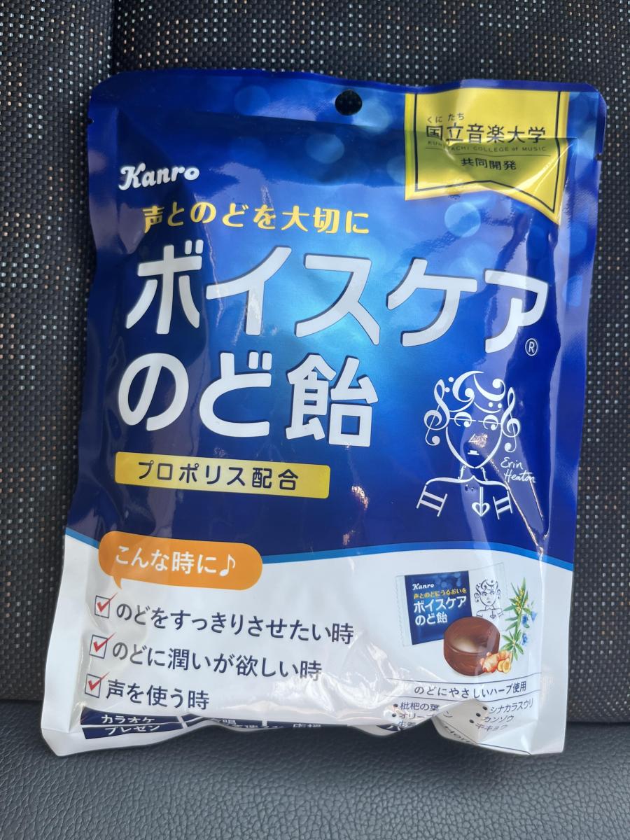 こちらは、‘国立音楽大学声楽科の教授監修のもと学生の声を聞きながら、試作を繰り返してつくった「声とのどを大切にする人」のためののど飴’とのこと。