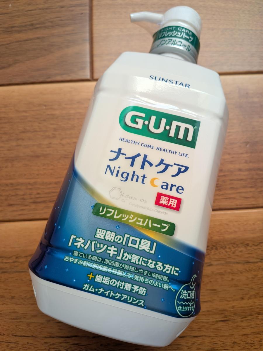 私は寝る前にハミガキをした後にプラスでこちらのナイトリンスを2プッシュ…口の中でクチュクチュしてからマウスピースを付けて寝るのが習慣になっています。その影響で家族も毎晩洗面所でナイトリンスを使うのが定番化しました。