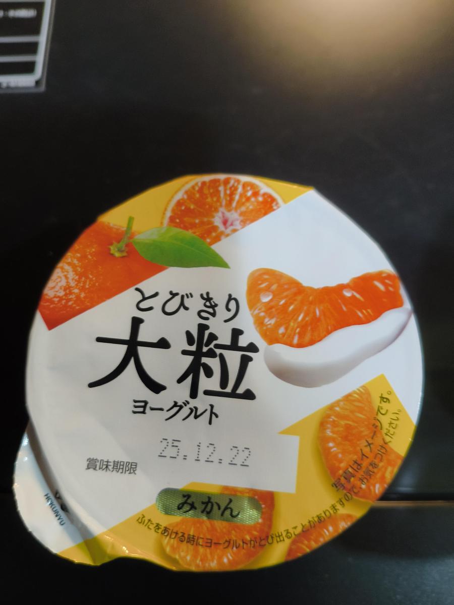このシリーズは初めて購入したのですが、本当に果肉が大粒で驚きました。ジューシーなみかんがゴロゴロと入っていました。しかもシロップ漬けのみかんよりも大粒です。1パックあたりみかん1個近く入っていたような気がします。とびきり大粒、という名前からある程度の果肉は期待していましたが、これは期待以上でした。ヨーグルトはほどよくなめらかで爽やかさもあり、果肉とよく合うものでおいしかったです。