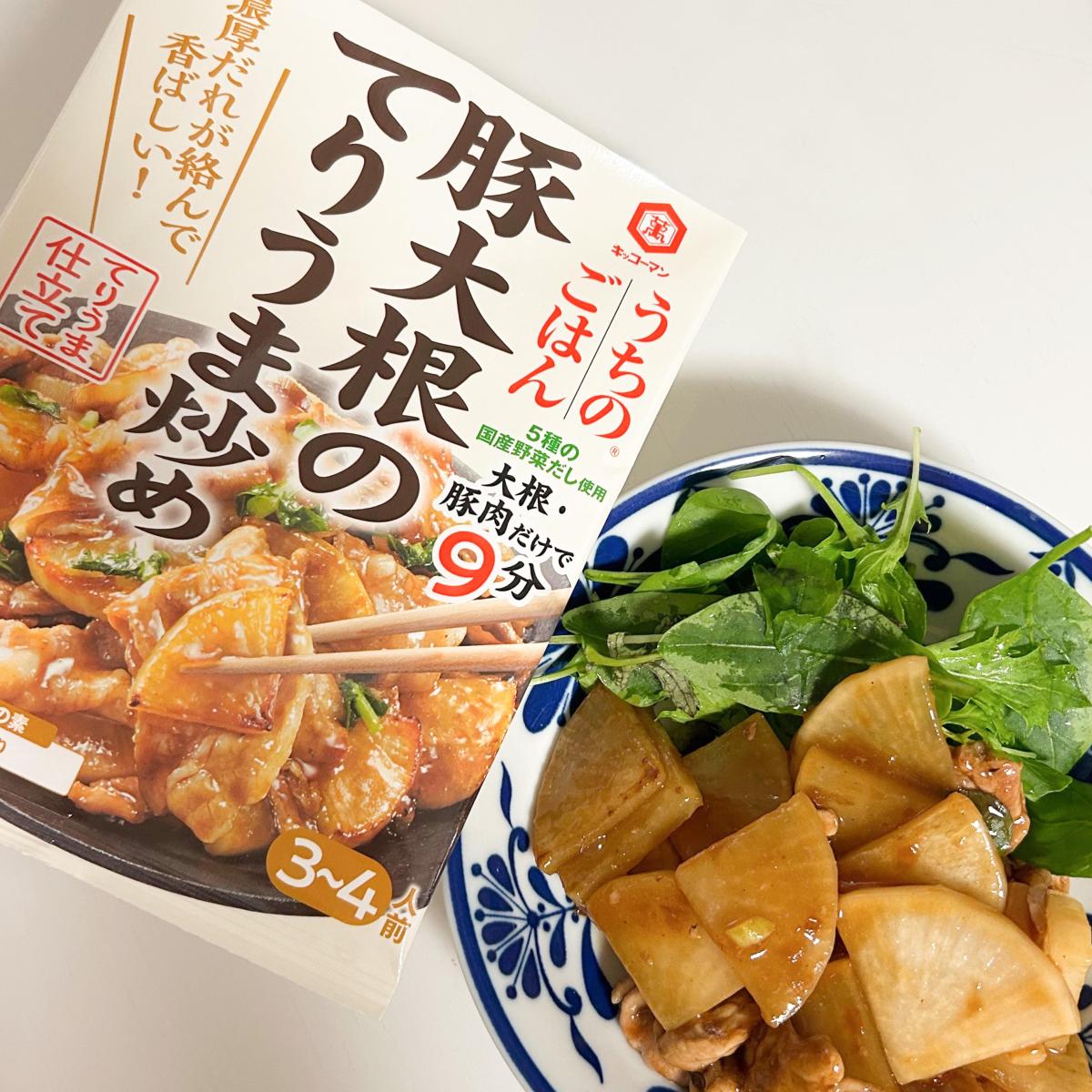 材料をフライパンで炒め、タレを入れて出来上がり!という手軽さがとても良い。味も、とろみのある醤油ダレで大根と豚肉にとても合います。しっかり濃いめなのでご飯が無限にすすむすすむ…。うちのごはんシリーズはハズレが無く間違いなく美味しいですね。リピします。