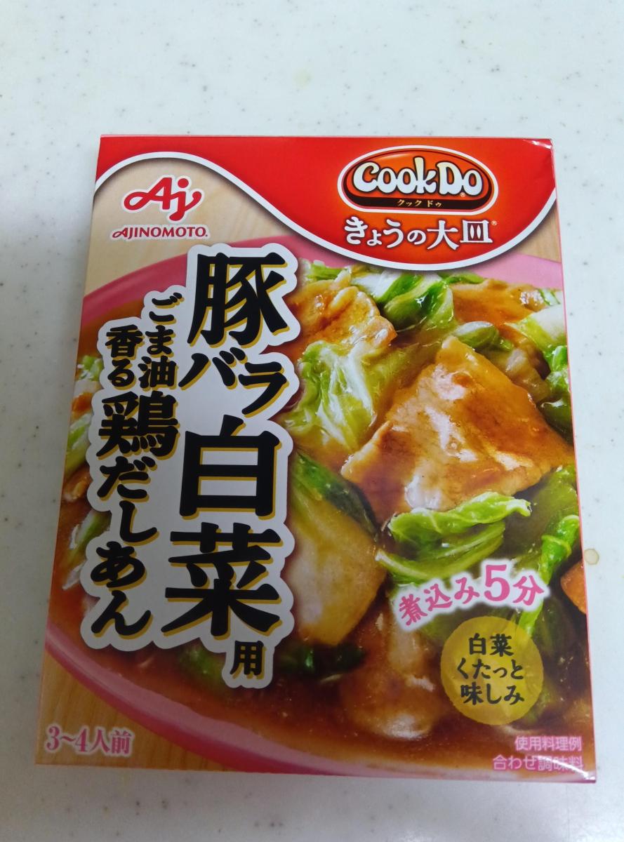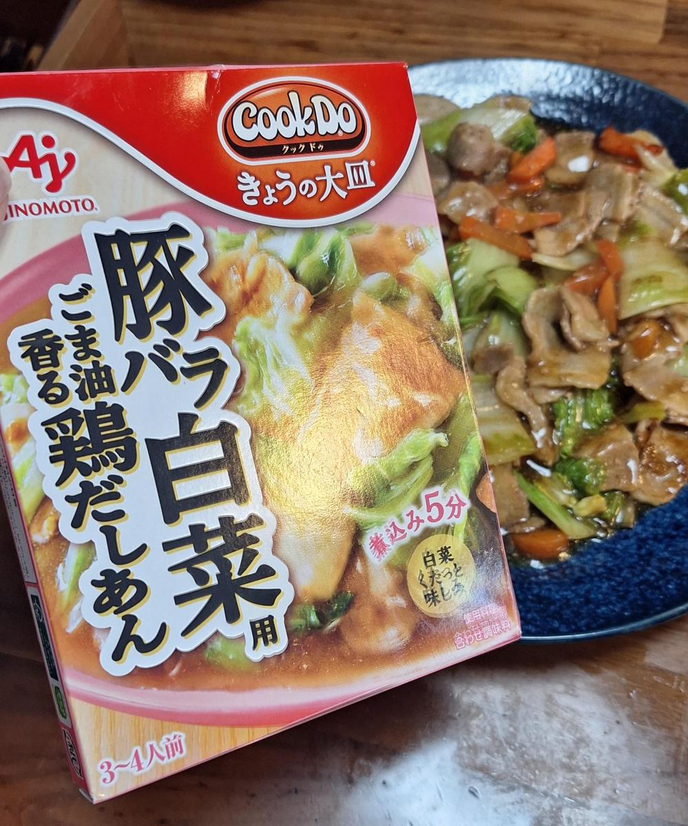 白菜が美味しい最高の季節。そんなタイミングで偶然スーパーのチラシに掲載されていたクックドゥの「きょうの大皿」シリーズに目が留まり、スーパーの思惑通りまんまと売り場でセット購入してきた商品です。