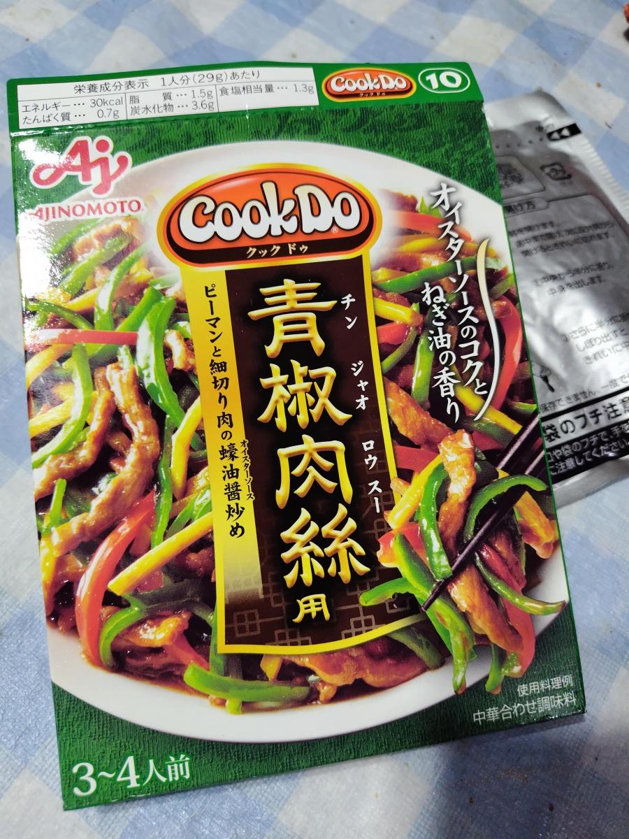 中華料理の素といったら昔から大定番のCook Doです。ピーマンがたくさんあったので青椒肉絲用を買いました。手軽に本格的な中華のおかずがつくれて大変便利です。ちょっと甘いたれに少し辛みがあってご飯がすすみます。オイスターソースがいい味だしてますね。