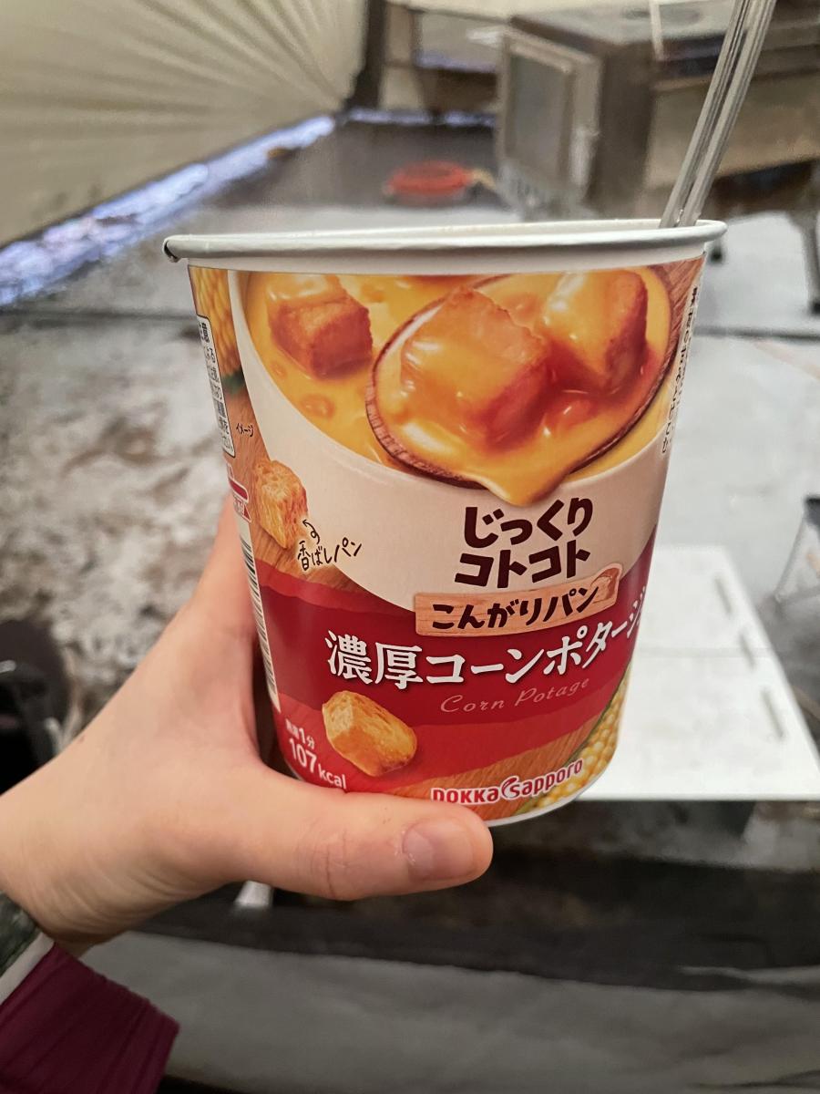 パンと、それにまとわりついた甘いコーンポタージュを同時に味わうことができるので、別々に食べるより効率が良いです。また、腹持ちの良い食べ物としての価値もあります。冬の寒い時期の間食に、うってつけの商品だと思います。