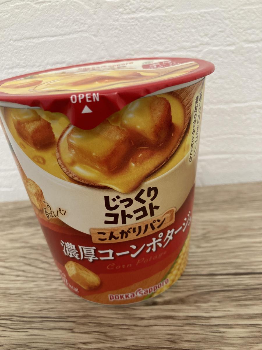 お湯を注ぐだけで濃厚なコーンポタージュが飲めるので便利です。