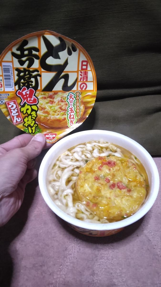 どん兵衛のもっちりとした麺と出汁の効いたスープに、後乗せのかき揚げがサクサクして美味しいです。