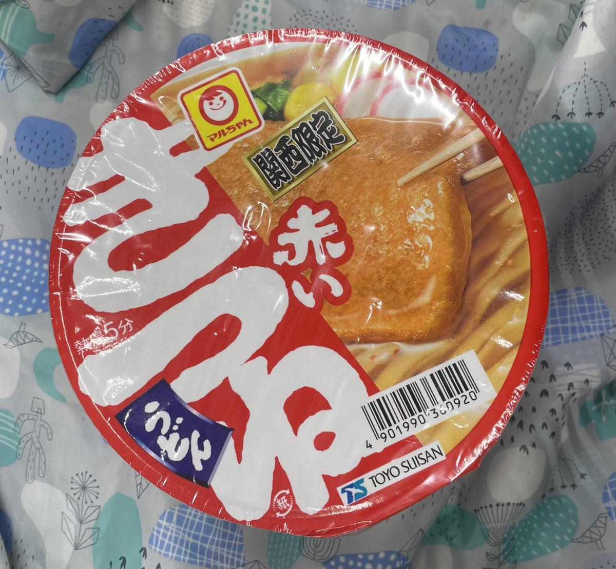 昔からある馴染みのある赤いきつね。久しぶりに食べて美味しさに感激しました。お揚げがでっかい!板かまも卵もこんなに沢山入ってたっけ?って思うほど入ってる。甘めのスープも麺に合ってて完食しました。ごちそうさまでした。