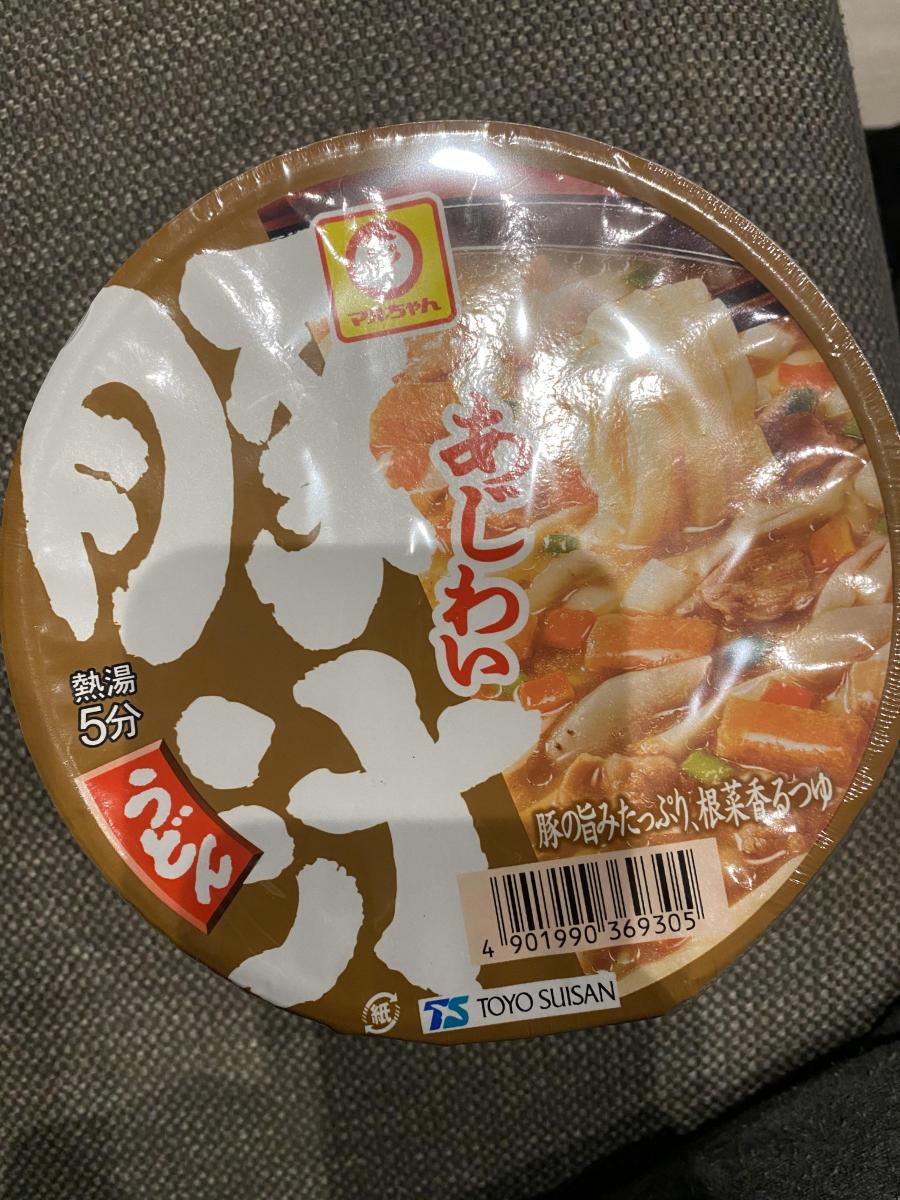 豚汁で具材が多いので贅沢なうどんで美味しくて良いですね。冬は温かい豚汁を食べたくなるのでスーパーで見かけて購入しました。味噌󠄀の風味が豊かであっさり味で食べやすいですね。麺は太めでコシがあります。