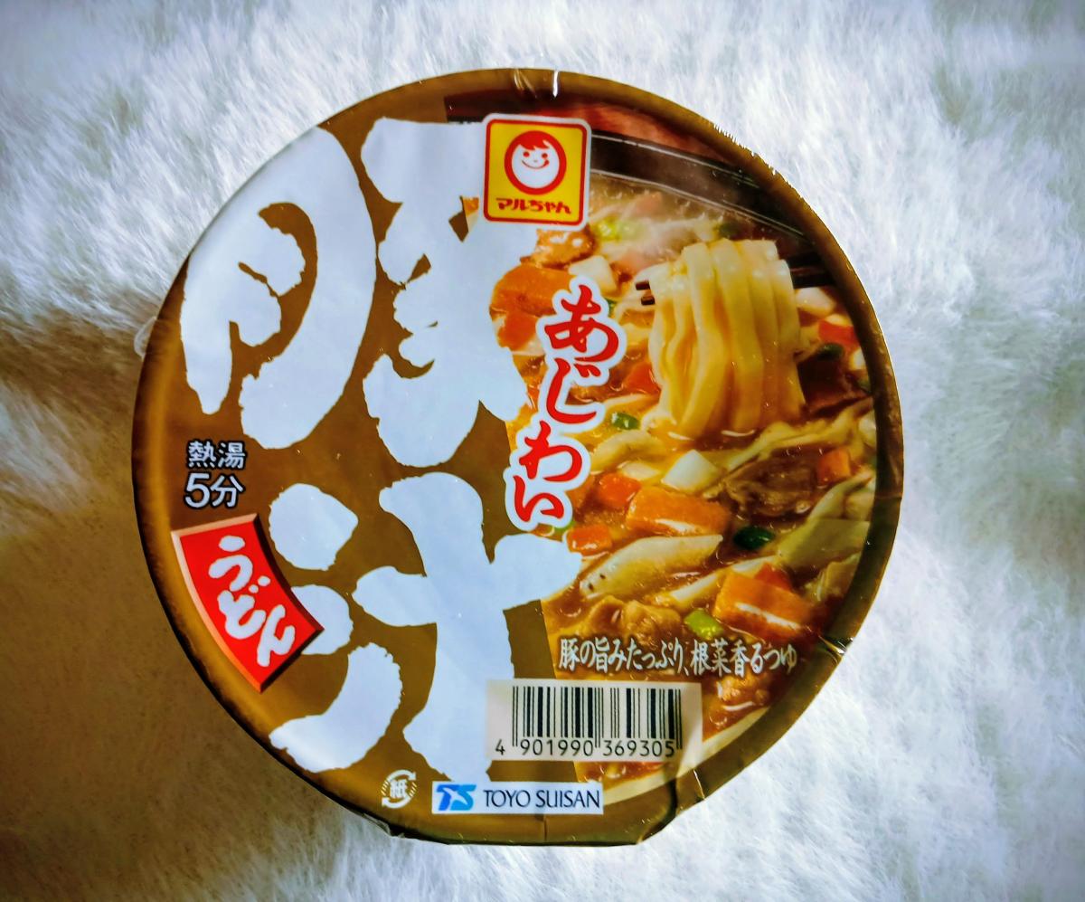 いつものマルちゃんの赤いきつねのうどんのスープが豚汁になって