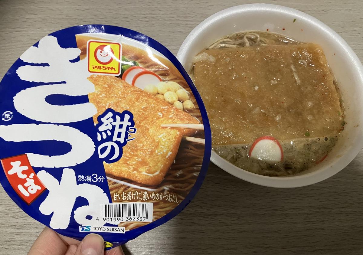 きつねうどんのカップ麺はどこにでもあるけど、きつねそばはなかなか見かけないので、見つけたら必ず買うようにしています。あまいお揚げさんがお蕎麦のお出汁にしみてホント美味しい〜。天ぷらそばのカップ麺よりも好きです。