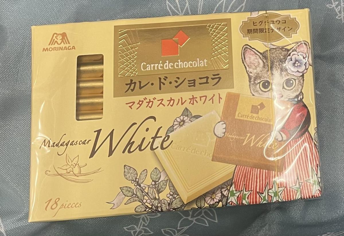 いつも高級チョコレートのイメージが高いこちらのチョコレート、パッケージの猫が可愛くて、ホワイトチョコレートも大好きなのでちょっと奮発して購入してみました!!ひとつひとつ、四角いオシャレな個包装になっていて、あけるとまたオシャレなチョコレート!見た目だけでもとてもテンション上がりました。ホワイトチョコレートのいい香り、そして、食べてみるとかなり濃厚!さすがマダカスカル産、甘くてとろけそうな美味しさでした。高いと思いましたが、枚数も多めに入っているので大事に食べようと思います。ブラックコーヒーにもとてもよく合いました。これだけ美味しいなら他のフレーバーもぜひ食べたくなりました!