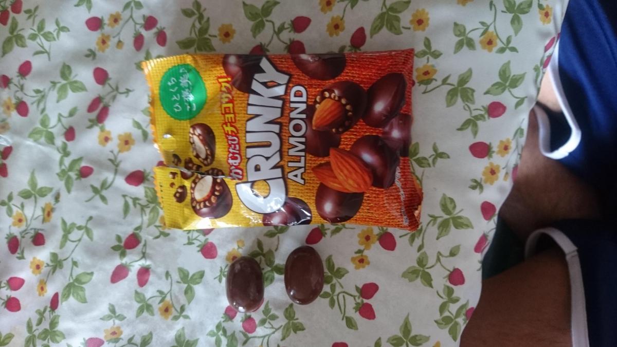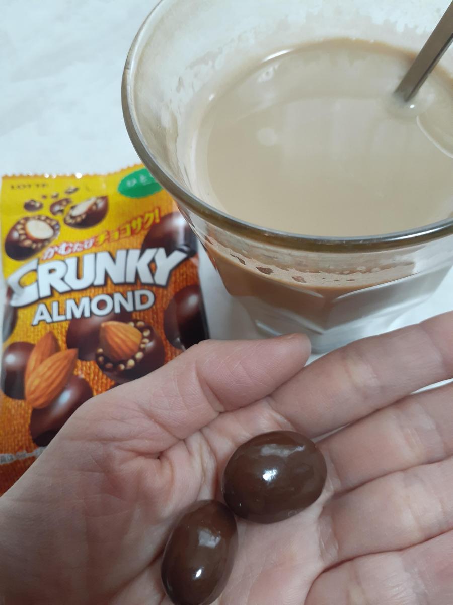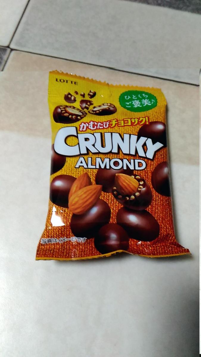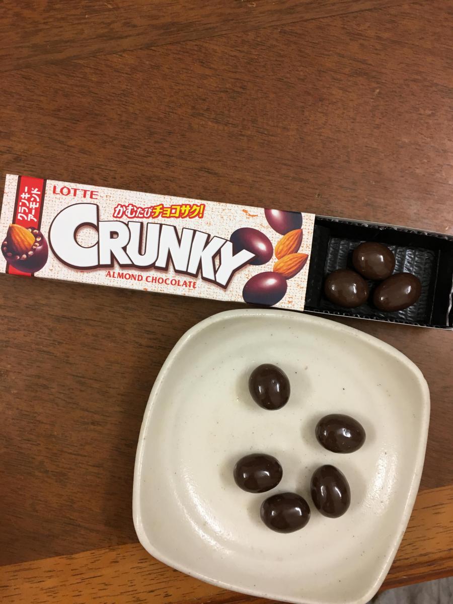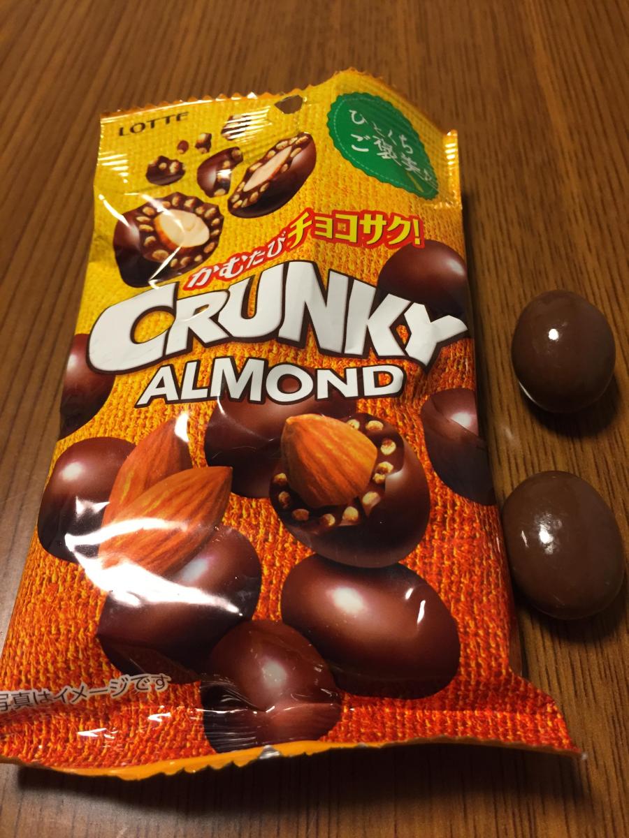 ロッテのクランキーはおなじみのチョコレートですが、こちらは中にアーモンドが丸ごと1粒入っています。これは珍しい!と思って手に取りました。