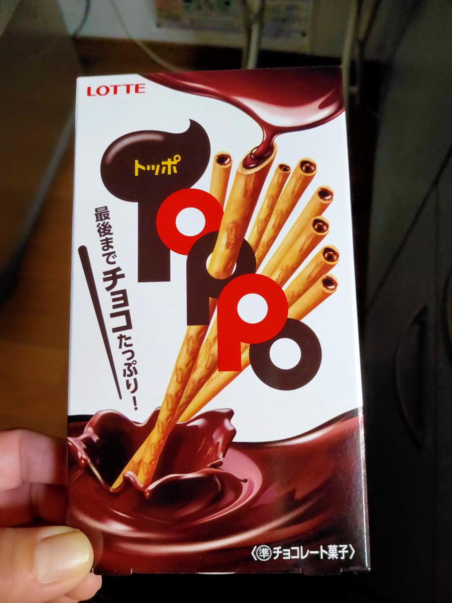以前からあるトッポ。どこのお店でも見かけるほど定番お菓子。チョコがしっかりと詰まっていて、満足できる美味しさです。手に取って食べやすいのも良いポイントですね。小腹が空いた時にピッタリ。