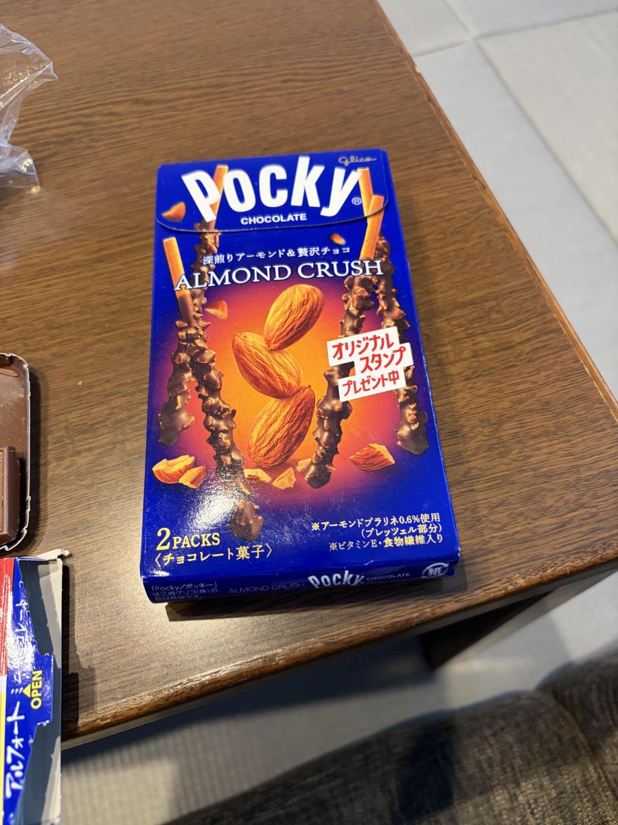 本数自体はそんなに多くは無いものの、パッケージのようにアーモンドがついているため、かなり満足度の高いポッキーです。アーモンドの香りも良く、チョコレートも甘すぎず硬すぎずとても美味しかったです。